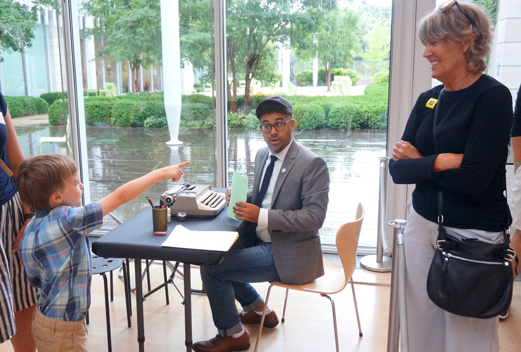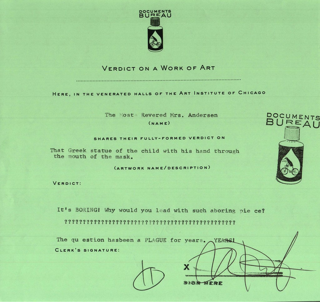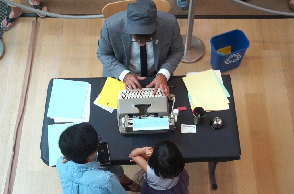 In July 2019, our bureaucracy reported to a not-unostentatious downtown address to be part of the annual Art Institute Block Party. Our work stations were positioned beneath the stairway in the hustling and bustling main hallway of the Art Institute of Chicago’s Modern Wing.