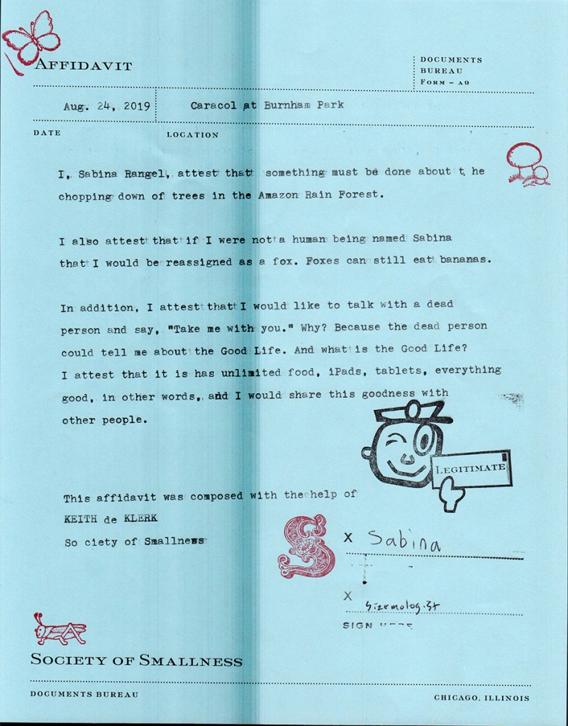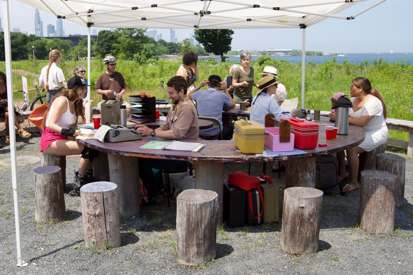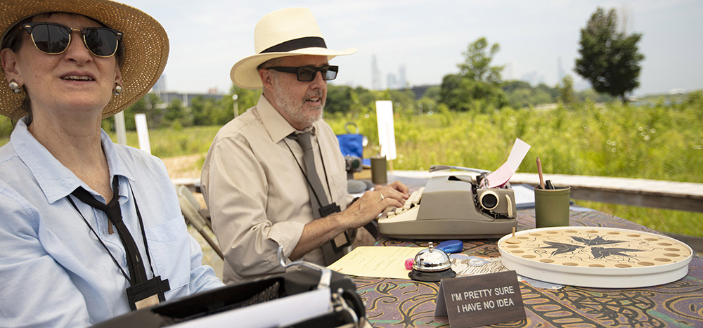 For Nature’s Notaries, Documents Bureau marshaled a team of pencil pushers to the grassy expanse of the Burnham Wildlife Corridor. Two events took place over the summer months at Caracol gathering space which is located along the Corridor near 25th street. Nature’s Notaries was produced in partnership with Night Out In The Parks and Northerly Island Park.